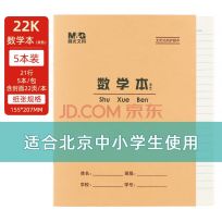 晨光(M&G) 学生作业本22K20页生字田格汉拼英语算术本牛皮纸软抄本米黄护眼铁钉本笔记本子标准版 数学本20页-5本装, 作文本20页-5本装